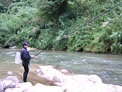 水深のあるここぞというポイントのみ釣り、1・2匹ずつ追加していく。深みのポイントからチャラ瀬に向かっていた時に悲劇が!!