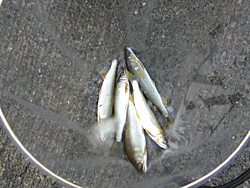 一方のよっさんはマイペース、軽〜く釣って15匹、『塩焼きも毎週食べれば飽きますよ。』と余裕・・・