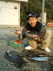 坂口君今日の釣果に満足な表情を見せる坂口君