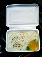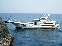 | しかし、型が伸びない・・・同礁した岩崎さんも同サイズをコンスタントに釣っていた。「あとは型が出れば文句無しなんですがね〜。」確かに贅沢な事だが私も同じ考えだった。しばらくすると玄海が見回りに来た、いつもの炊き立て弁当をもらう。 |