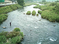 | ほっと一安心の僕、まずは矢部川へ 車で下流から様子を伺い黒木警察署裏まで見て回る。 水量もよく川の状況は良いみたい、だけど誰も竿が曲がりません。 逆に橋の上から見ている僕に釣り人が「すんませ〜ん、鮎見えますか!!」「すんませ〜ん、どっか掛かりようですか〜」と聞いてくる始末、思った以上につれてない様子です。 仕方なく回って見た中で一番釣れそうな西桑原の橋下流に入る、緊張の手で鼻カンを通しポイントへ・・・45分 音沙汰ありません。近くの釣り人も全くだめで竿をたたむ、「このままでは坊主???」 きっちり見切りを付けていざ星野川へ!! 下流から様子を見ていくと小さいがいたるところで鮎が食んでいる。「何とか鮎釣りが成立しそう。」 一番鮎が遡上しているであろうポイントまで車を飛ばしチェックすると昨年釣れたポイントまで鮎はあまり上ってなかった。様子を見にきた近所のおじさんも「今年はコマカシ、サカナガノボッテキヨラン、水が冷たくて・・・」 その言葉を聞きすぐさま下流の北川内へ移動、早速支度し川へ入る。 ![]() 寄口橋下流 いつもの場所、期待にこたえてくれました。 |