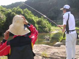 Kさんも大型野鮎に振り回され鮎の引きの強さを感じていました。