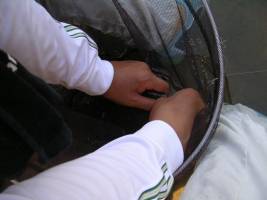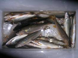 | まずは厳木支所で日釣り券を購入して今度はオトリを購入、笑顔の素敵な組合長は時々うちのホームページを見ていただいているそうで今後は情報を交換しようということになりました。