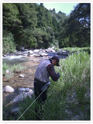 9月9日 玉島川 今日は天気がいい!同行したのはRさん、今回が生涯3回目の鮎釣りでしかも2年ぶりです。 「店長!オトリ1匹あればいいよね〜」脱帽です。 さ〜現場到着!しかしなぜか釣場に複数の人影、しばらくして組合長が車で来た。しかもカメラを持って・・・ |